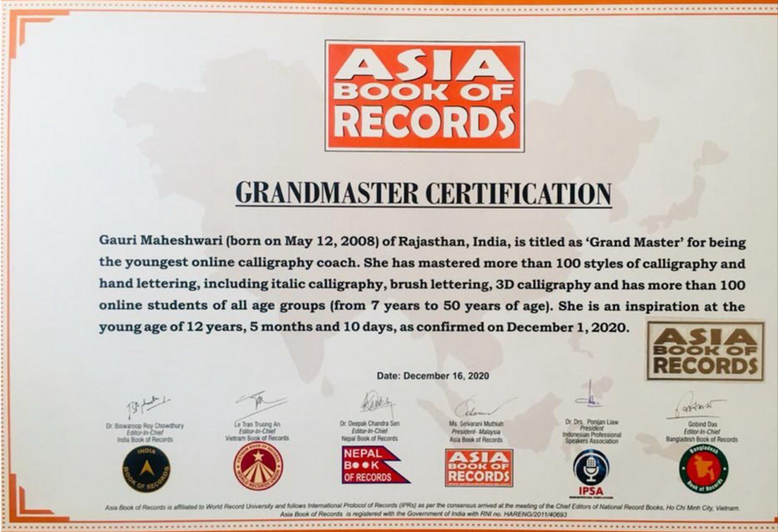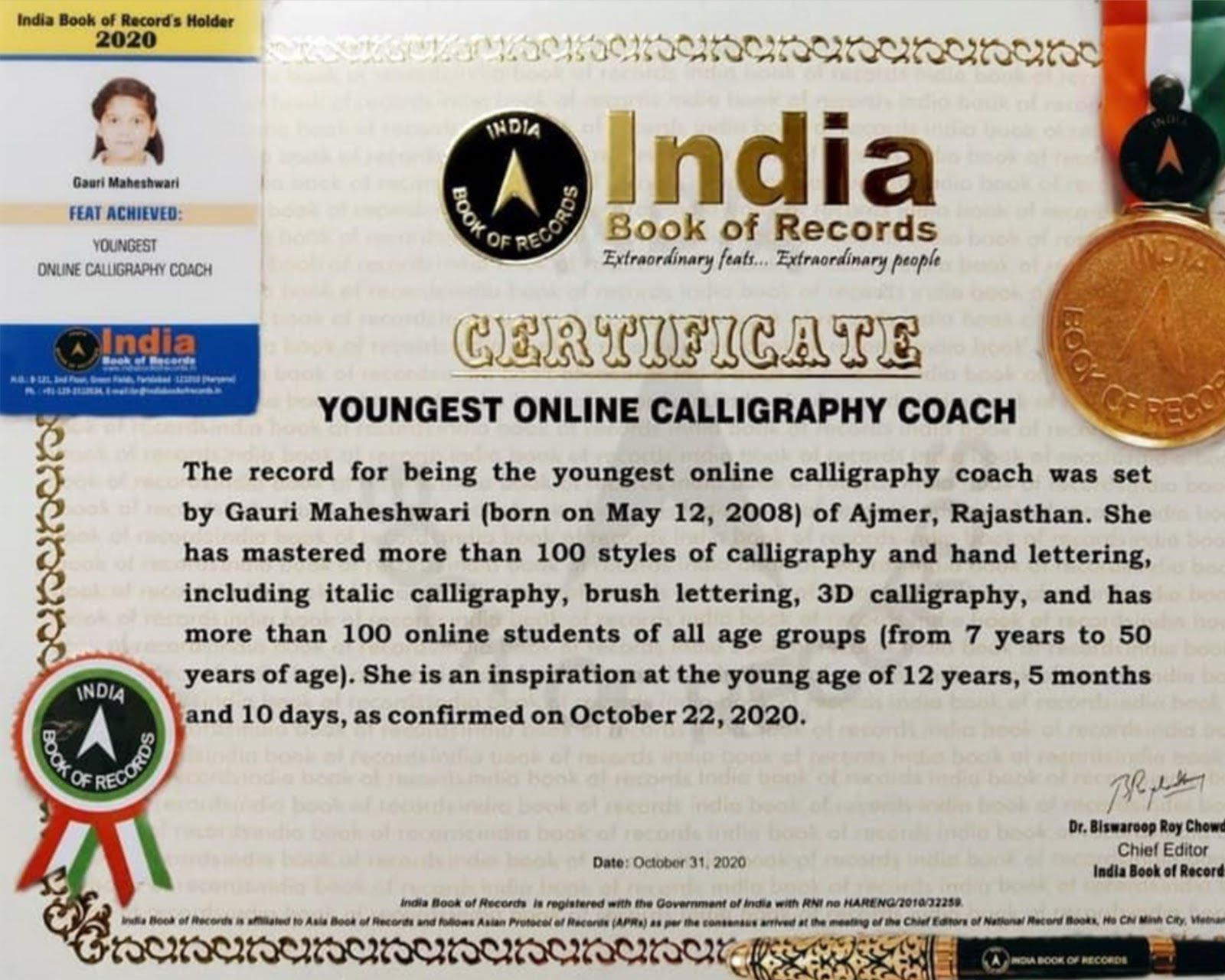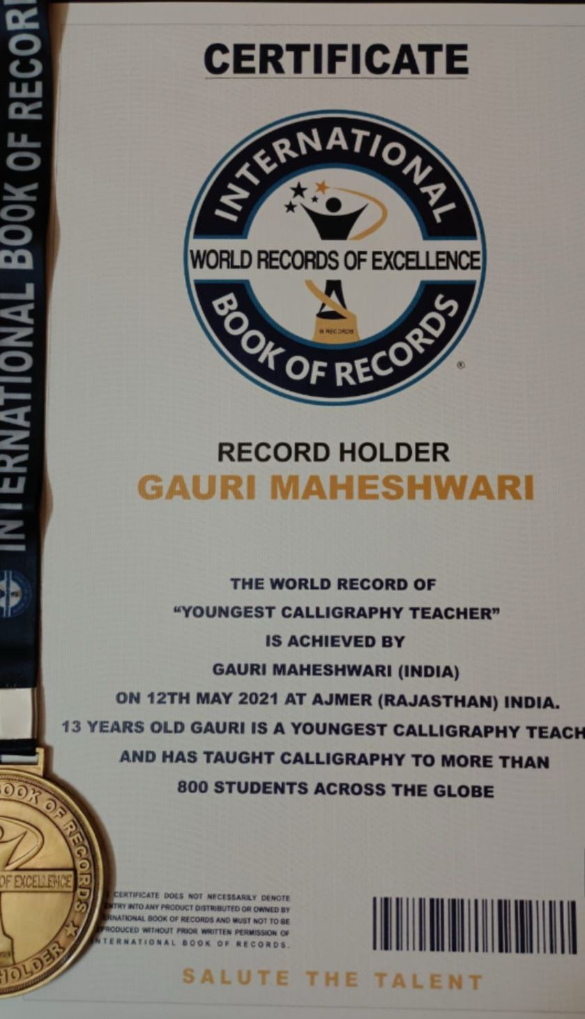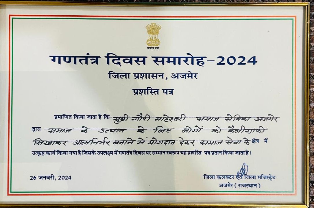 Was awarded by District Collector and Minister of Water Resources for my mission of empowering people by teaching them calligraphy skills