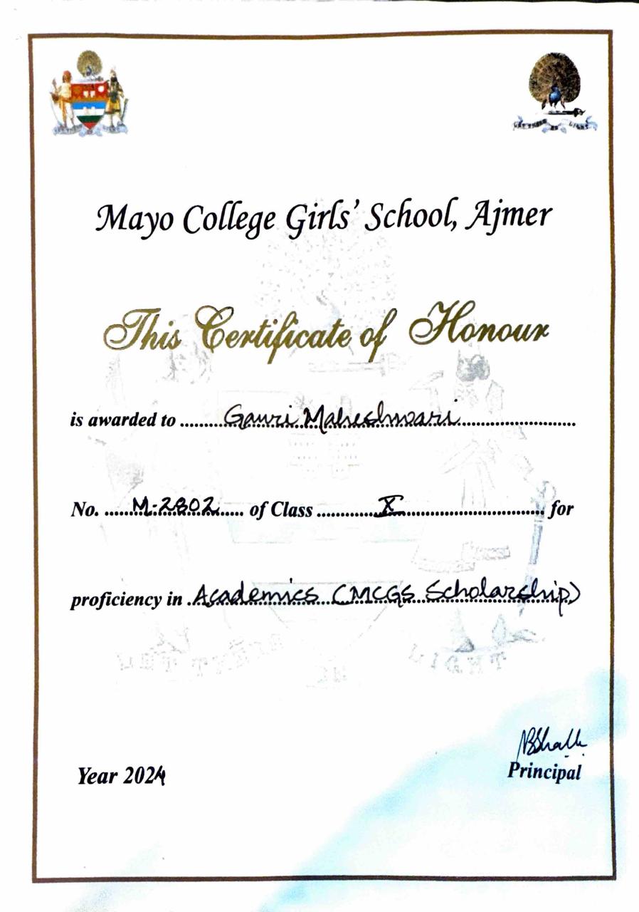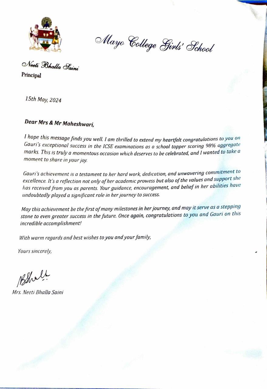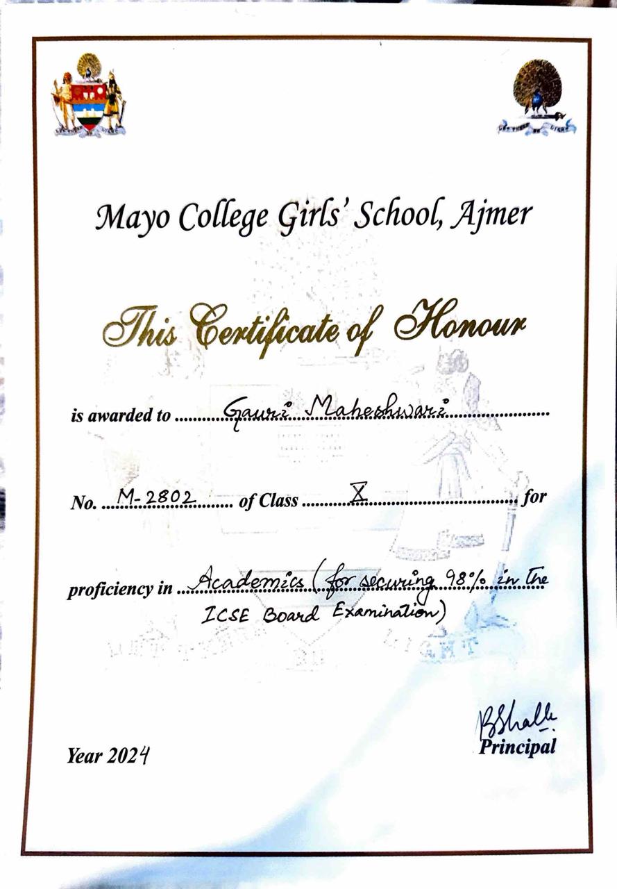 Topped Mayo Girls ICSE Board Exam with 98%